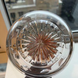 The carafe is adorned with flat olive-shaped cuts running around its center, and meticulous textured on the upper part of the bottle, which create striking vertical lines. The Rachel Magnum Wine Carafe has a magnum capacity, perfect for wine, spirits, port or water.