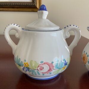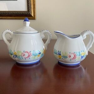 William-Sonoma Mari Floral Hand-Painted in Italy Sugar Bowl and Creamer Set
