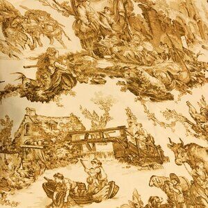 Very good condition, Williams Sonoma vintage brown on tan, giving it a sepia tone, 100% cotton tablecloth. 68 inches X 126 inches (5' 8" X 10' 6"). Made in Italy, French Countryside print, machine-washable, makes a great addition to your home.