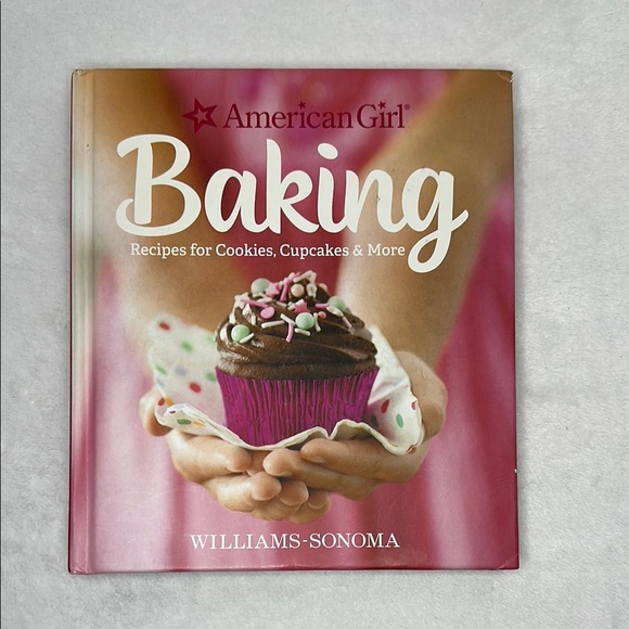 Williams Sonoma baking book with recipes for cookies and cupcakes. Features a vibrant pink cover with a cupcake image.