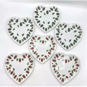 Williams Sonoma Berry Heart Shaped Plates Fruit Dessert Snack Japan 7" Set Of 6
