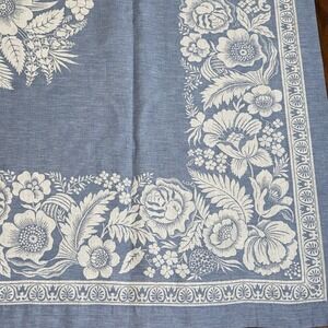 Williams Sonoma Blue Vintage Floral Jacquard Tablecloth 70 X 90 European