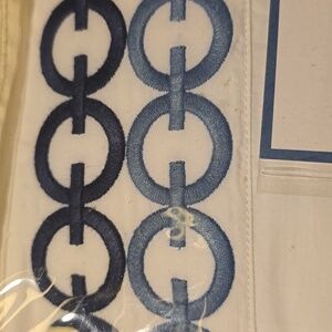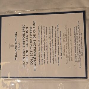 Transform your bedroom with the Williams Sonoma sheet set, featuring a pristine white base adorned with intricate blue embroidery. This elegant design adds a touch of sophistication and style to your bedding ensemble. Crafted with attention to detail, the sheets offer both comfort and a luxurious aesthetic. Perfect for those who appreciate quality and timeless design in their home decor.