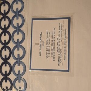Williams Sonoma Chain Link White Embroidered King Sheet Set