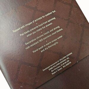 Silver Toned Chrome. Flat blade prevents food from spinning when you rotate the skewer.