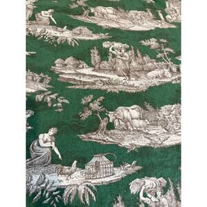 Williams Sonoma French Country Tablecloth in Green Toile de Jouy Bretagna design. Good preowned condition