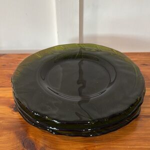 Williams Sonoma Green Pressed Glass Plate Olive Branch Set of 3