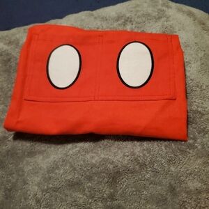 Stylish apron with red and brown design. Features adjustable neck strap and waist ties. Perfect for cooking and baking.