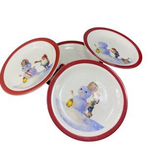 Williams Sonoma Santa Building Snowman 7inch Plate Dish Set 4 All Different VTG