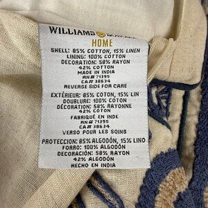 Williams Sonoma Trellis Linen Embroidered Blue Pillow Cover 29" X 16"