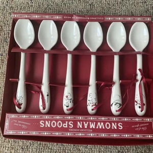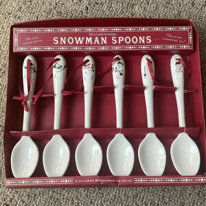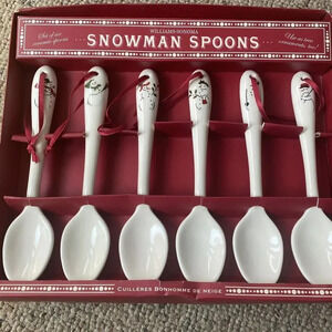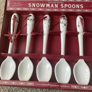 Add a festive touch to your home with this set of six ceramic spoons from Williams-Sonoma's 2006 Snowman Collection. Featuring a traditional style and a snowman character, these spoons are perfect for any room and occasion, especially Christmas. The white color and ceramic material give them a classic look that will complement any decor.