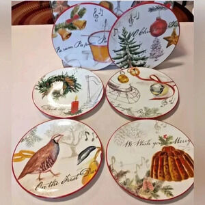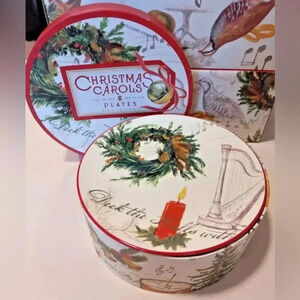 Williams-Sonoma 2011 CHRISTMAS CAROLS 6 Christmas Song Inspired Luncheon Appetizer PLATES in decorative, original box. NWT (Six plates per box.) ***LAST SET!!!***VERY HEAVY!! Price includes additional cost for shipping****