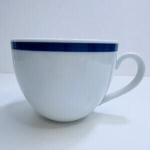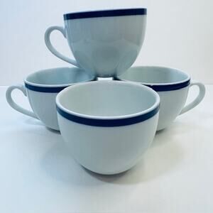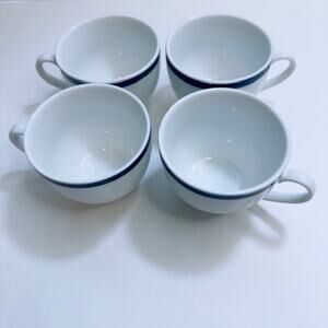 Williams-Sonoma Flat Cup Brasserie Blue Set of 4 White w/Blue Band Japan