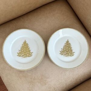 Williams-Sonoma Gold Christmas Tree Salad/Dessert Plates Set of 2 Discontinued