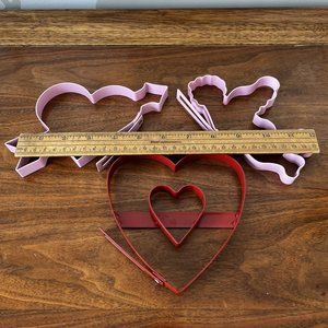 These Williams-Sonoma Valentine Pancake Molds are perfect for a sweet Valentine's Day breakfast. The set includes three nonstick, pink and red metal molds in the shape of hearts and Cupid. I believe this set is vintage from the early 2000s (item #6492979). It is hard to find now.