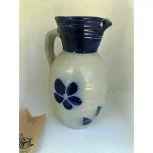 Williamsburg Pottery Pitcher Set Vintage Colonial Stoneware Blue Salt Glaze USA