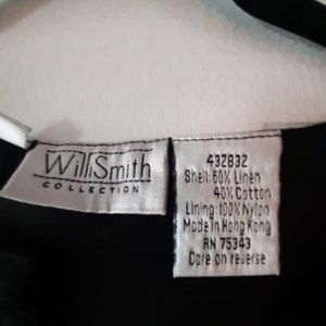 The dress is a vintage Willie Smith. It is made of 60% linen and 40% cotton. It is sleeveless and fully lined. It is in pristine condition,