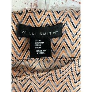 Willie Smith Womens Medium Shirt Tank Sleeveless Side Slits Red Orange Tan Black
