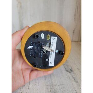 Product has mild scratches and marks but otherwise in good condition. Product winds up and plays " God bless America" no box and spins slowly