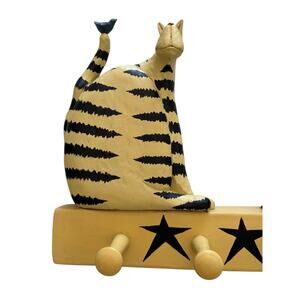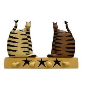 Williraye Studio Two Cat Coat Hanger Hooks Birds On Tails Tabby Cats Stars