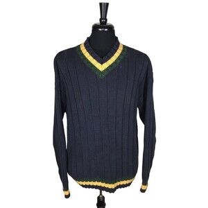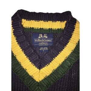 Willis & Geiger Outfitters Mens Striped Cotton V-Neck Pullover Sweater Large