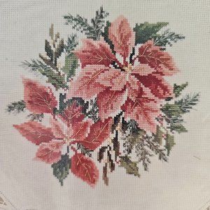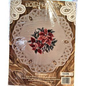 Willmaur Crafts Cross Stitch Poinsettia Doily Battenburg Lace edged #14 aida