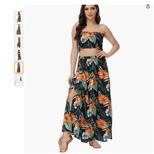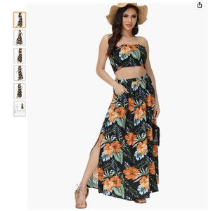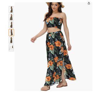 Willotis 2 Piece Hawaiian Outfits for Women Summer Vacation Beach Floral Crop Top Maxi Skirt Set Luau Split Dress with Pocket