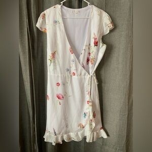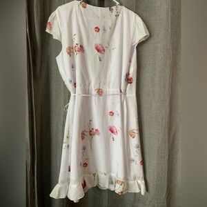 Willow And Clay White Floral Wrap Dress XL Short Sleeve V Neck