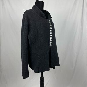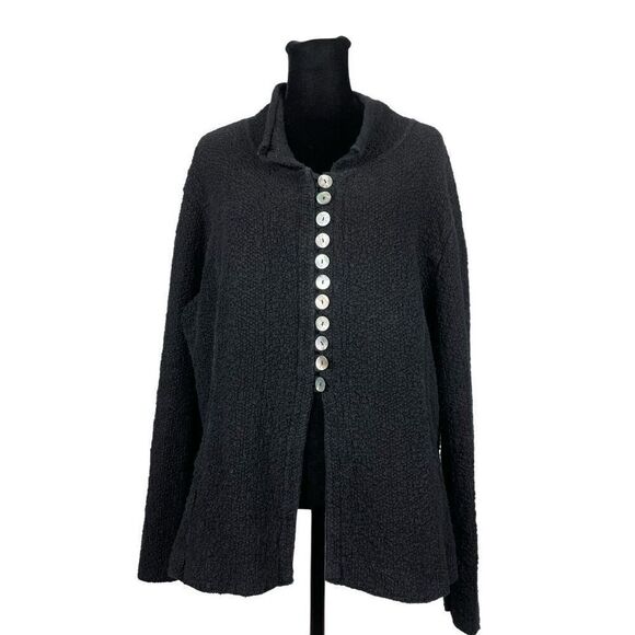 Black 100% Cotton Textured Vintage Anthropologie Willow Button Down Swing Cardigan Sweater Jacket.