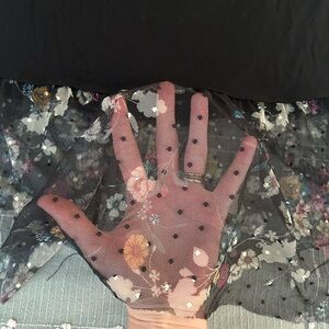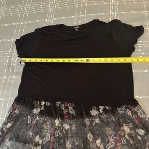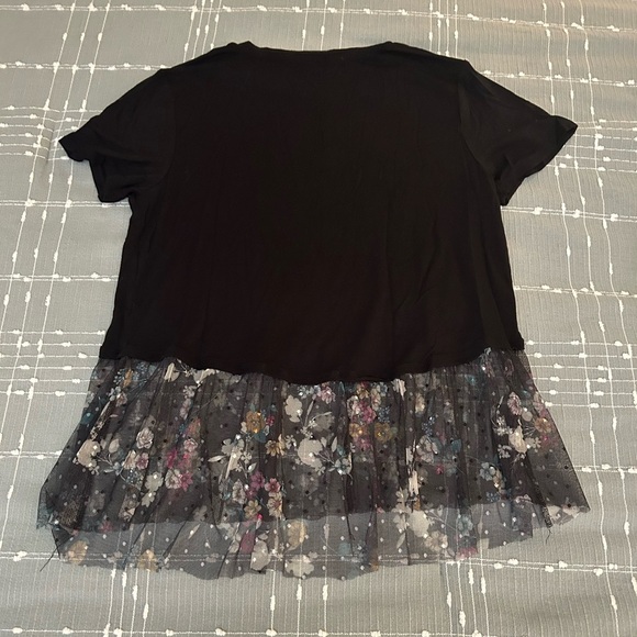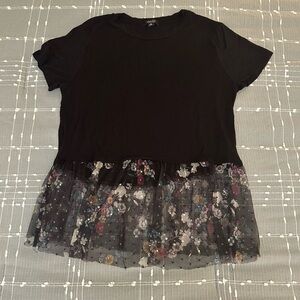 Elevate your style with this chic black top featuring a floral mesh hem. Perfect for any occasion. Very nice condition and super cute!!
