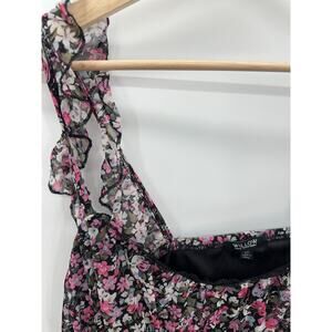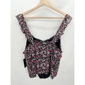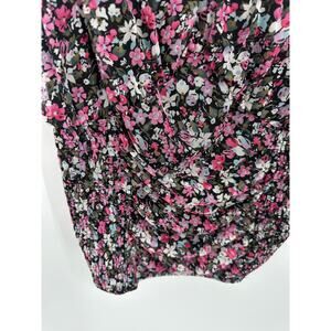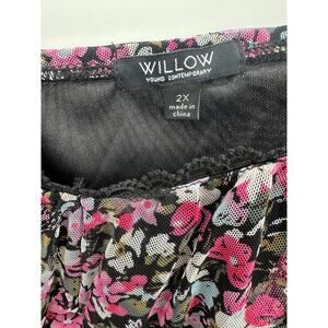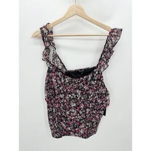 Willow Black Pink Microfloral Ruched Smock Ruffle Sleeve Tank Top Women 2X NWT
