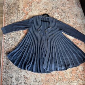 Willow Blue Pleated Woman’s Long Winter Fall Sweater Cotton Irish Snap Front XL