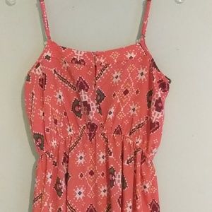Salmon, pinkish, print dress, adjustable straps, 2 buttons on the back, elastic waisst EUC