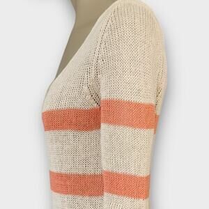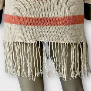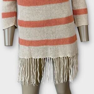 Willow & Clay Linen Blend Fringed Knit Lightweight Sweater Size S Striped Cream
