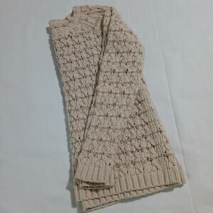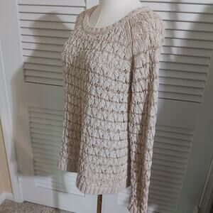 Step up your style with this beautiful Willow & Clay sweater! It features cream-colored cotton with metallic, gold thread, raglan sleeves, and a comfortable tunic style.