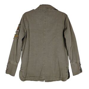 Willow & Clay Military Quilted Jacket Size Medium Green Beaded Arm Patches