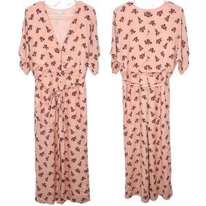 Willow & Clay Plunging Neckline Floral Print Wide Leg Jumpsuit in Pink Size 4