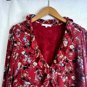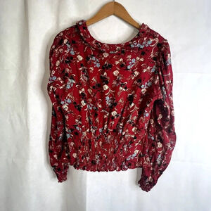 Willow & Clay Red Floral Boho Blouse Size Medium