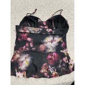 Willow & Clay Women's Size Small Floral Bustier Corset Style Tank Top Black Made in USA Cut 1421 Style WVI73073615