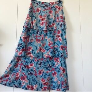 Willow & Clay Y2K USA Made Boho flowy Soft light weight Vibrant Blue Pink Floral Tiered Ruffle Maxi Long Skirt