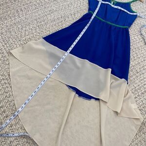 Willow & Clay green blue colorblock dress small. Color block I. Blue, Bremen and beige in high low style with adjustable straps elastic waist and keyhole detail. Gently used condition see photos for measurements and fabric content