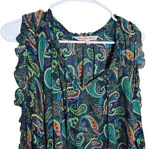 Willow Drive Blouse Women's XL Paisley Colorful Cold Shoulder Ruffle V-Neck Top