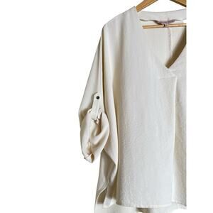 Willow Drive Women's 3/4 Sleeve V-Neck Hi-Low Relaxed Pullover Top Size XL Cream