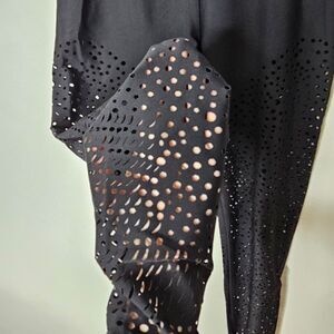 Willow Jet Black Laser Cut Design High Waist Stretch Legging Pants Medium