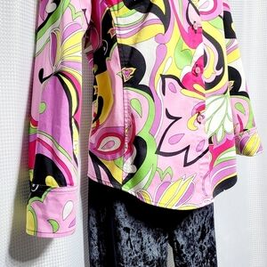 Willow Retro Groovy Funky & Floral Colorful Stretch Blouse Women's (M) Made in U.S.A.