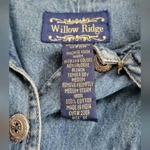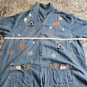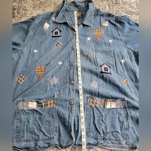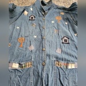 Willow Ridge Blue Button Down Shirt/Jacket with Patchwork Design