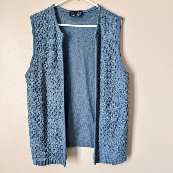 Willow Ridge Knit Sweater Vest Womens Large Vintage Blue Preppy 90s Twee Classic