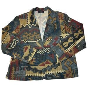 Willow Ridge Vintage Cotton Southwest Aztec Blazer Jacket 3/4 Sleeve Size 20