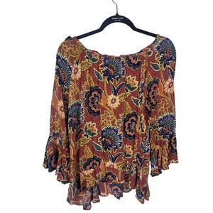 Willow & Root Boho Floral Peasant Top XL Rayon Fall Tunic Blouse Festival