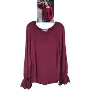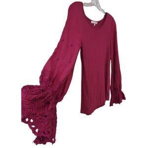 Willow & Root (Buckle) Embroidered Bell Sleeves Top Burgundy Maroon Red Size M